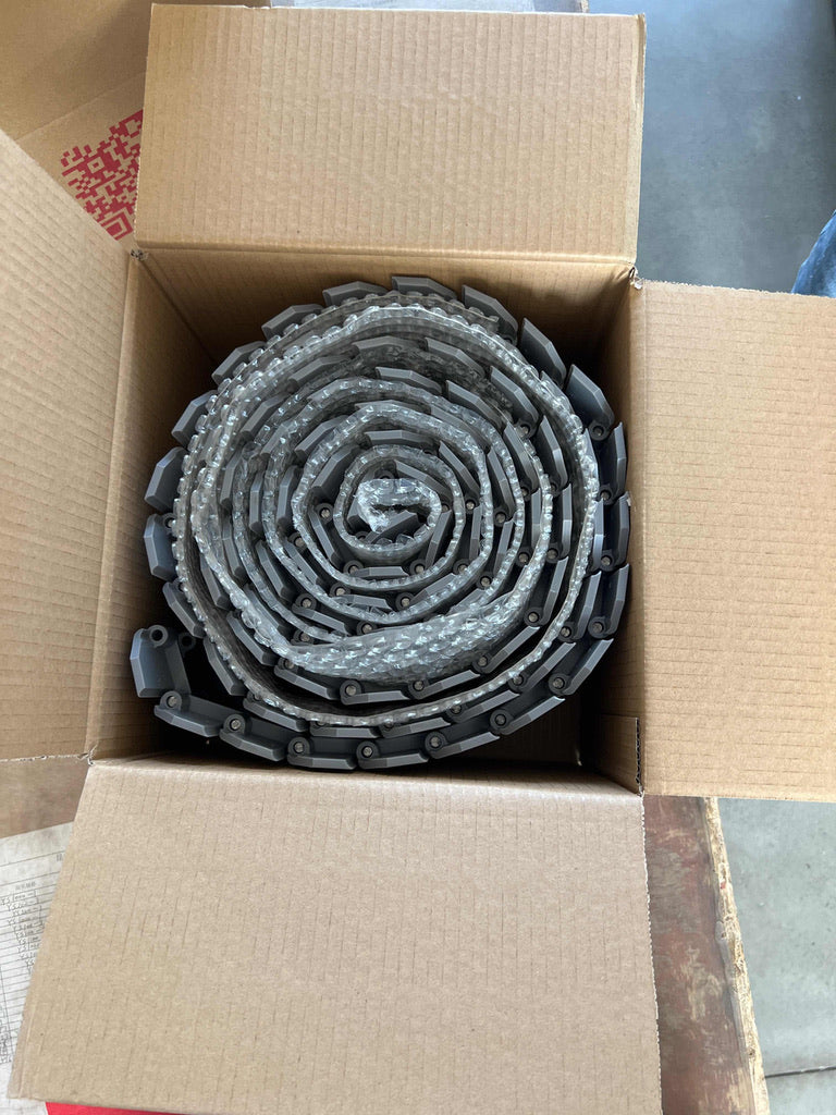 A set of 90 links produced by YA-VA. These are the same color as the original Rexnord track links, but they have had their corners pre-trimmed, and the holes pre-drilled. The properly colored Rexnord track are no longer being produced.