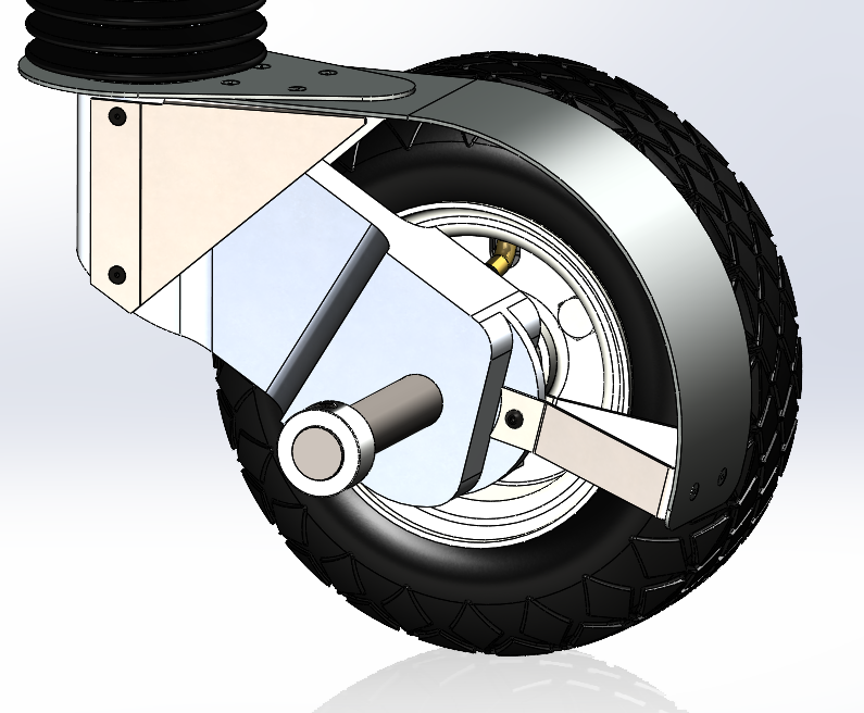 Single piece caster spindle machined from a single piece of stock.